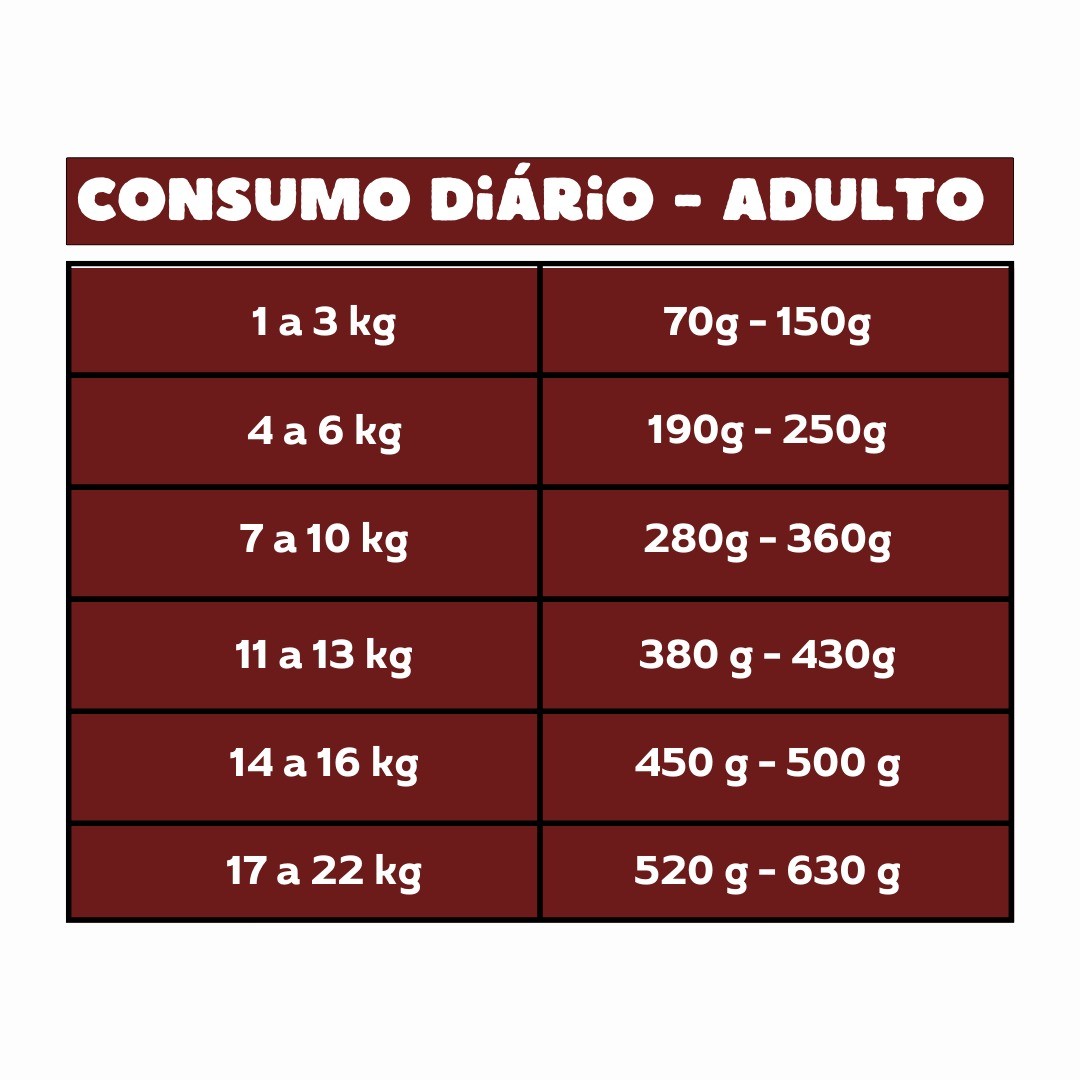 Carne suína (pernil), chuchu, abobrinha, batata doce, arroz branco, farinha de bsf, água, óleo de girassol, aveia, semente de linhaça, alecrim, manjericão, Ácido Fólico, Ácido Pantotênico, Betaglucanos, Biotina, Cálcio, Cobre Mineral Quelato, Colina, Ferro Mineral Quelato, FOS, Fósforo, Glucanos, GOS, Iodo, Magnésio Mineral, Manganês Mineral Quelato, MOS, Niacina, Selênio Orgânico, Vitamina A, Vitamina B1, Vitamina B12, Vitamina B2, Vitamina B6, Vitamina C, Vitamina D, Vitamina E, Vitamina K3, Zinco Mineral Quelato.